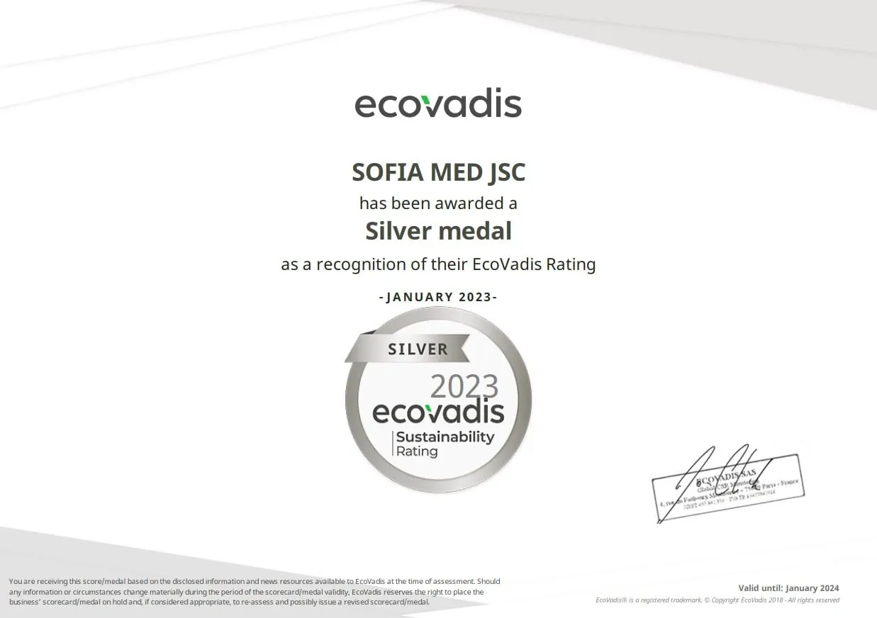 Sofia Med achieves SILVER EcoVadis medal for sustainability performance.